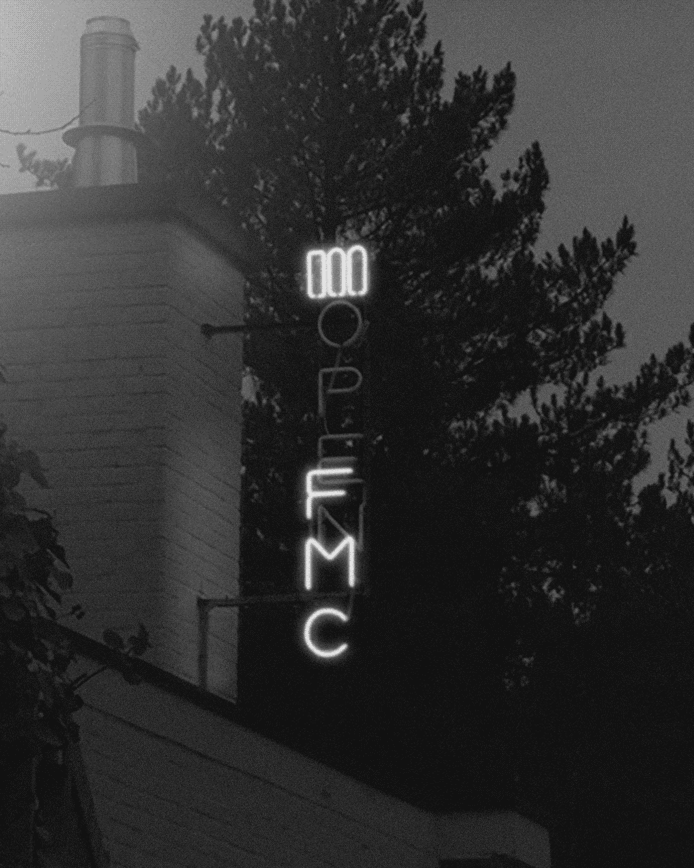 Neon installation FMC-OPEN for the Frans Masereel Centrum in Kasterlee. In this sequence the “E” becomes an “F” and the “N” becomes an “M”.